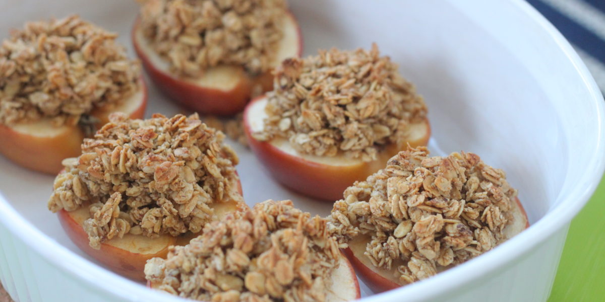 Tip for the cook: Get your kids involved! This is a great recipe for your kitchen helper. After an adult cuts the apple, kids can have fun measuring and mixing the topping, scooping out the apples and topping them with the oats.