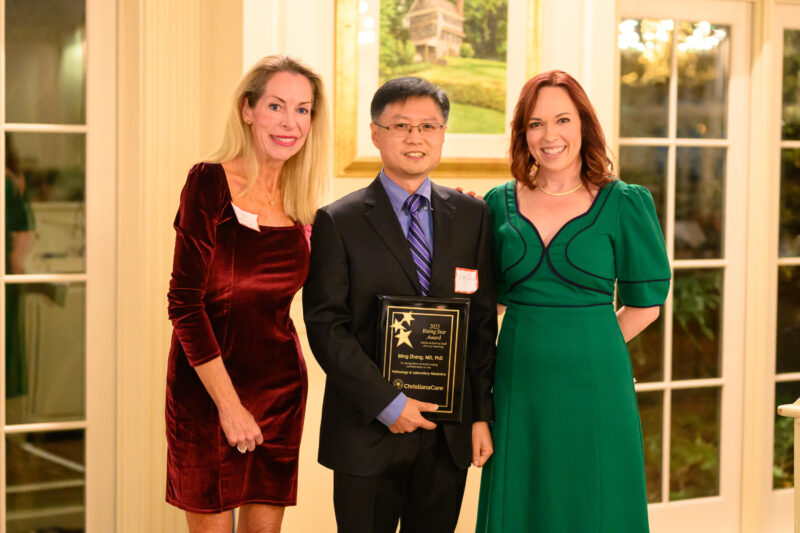 Ming Zhang, M.D., Ph.D., a pathologist, has served as ChristianaCare’s medical director of Cytopathology since 2020. Under his guidance, the Cytopathology department expanded its use of molecular testing for thyroid and other tumor types. His colleagues often consult with him because they value his diagnostic acumen. “Dr. Zhang generously dedicates his knowledge, skills and time to supporting the Department of Pathology and Laboratory Medicine, and to improving patient care throughout the entire organization,” said Mary Iacocca, M.D., chair of Pathology and Laboratory Medicine.